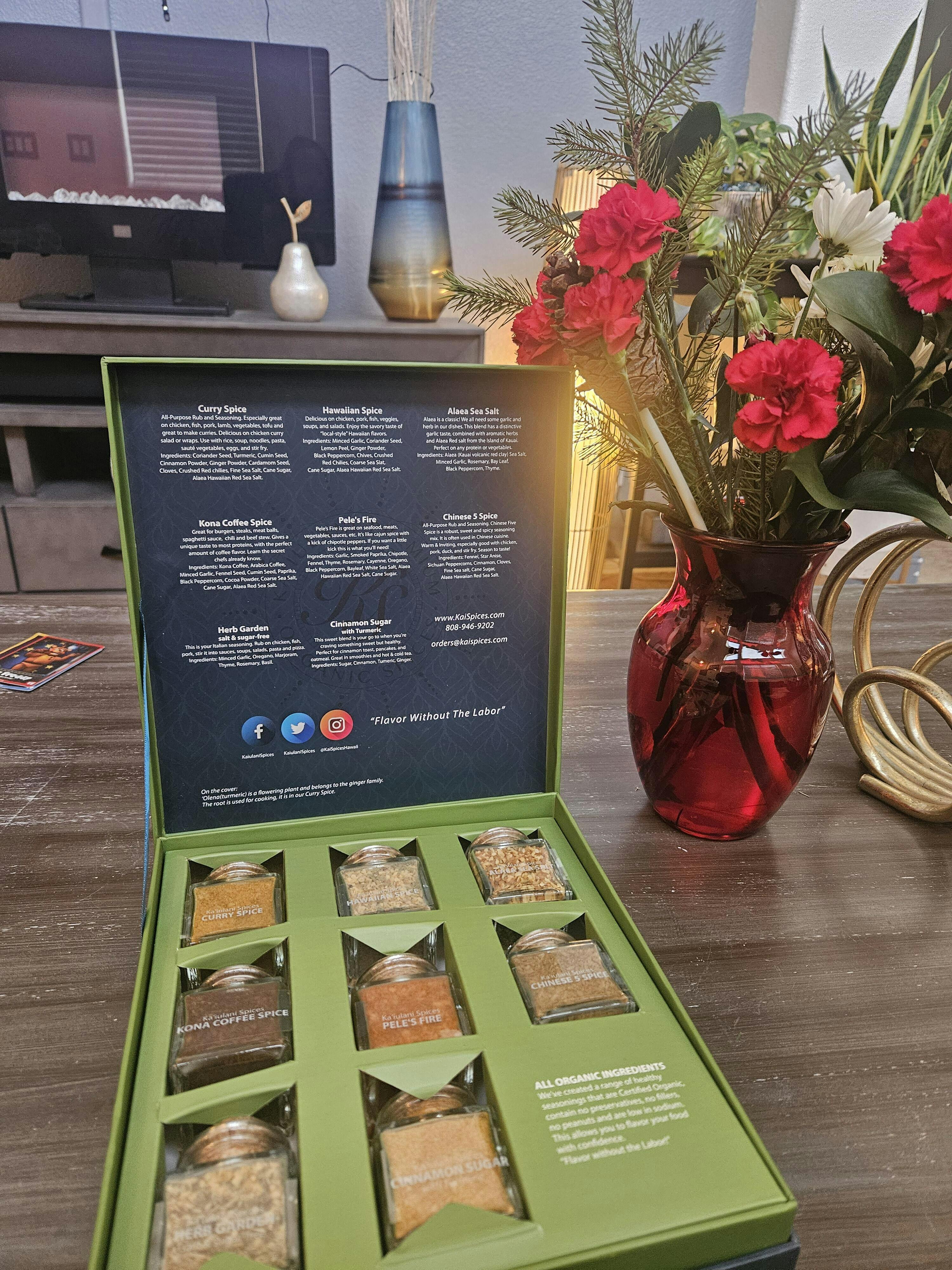 Gift the joy of carefully curated spices to any experienced cook or cook-in-the-making. They can attain expertly seasoned, delicious food with our limited-edition spice Ka‘iulani Spices Gift Boxes. Explore local Hawai‘i cuisines with the array of spices provided. This beautiful box includes an 8-jar collection of our favorite seasoning blends used international recipes. Taste the flavors of the world without leaving your kitchen. This incredible Gift Box (9” x 10”) includes: